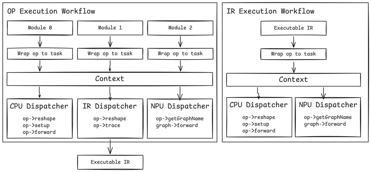 kExecuteModuleorkExecuteOptasksDispatcher Selection: Routes to appropriate backend dispatcher based on device type